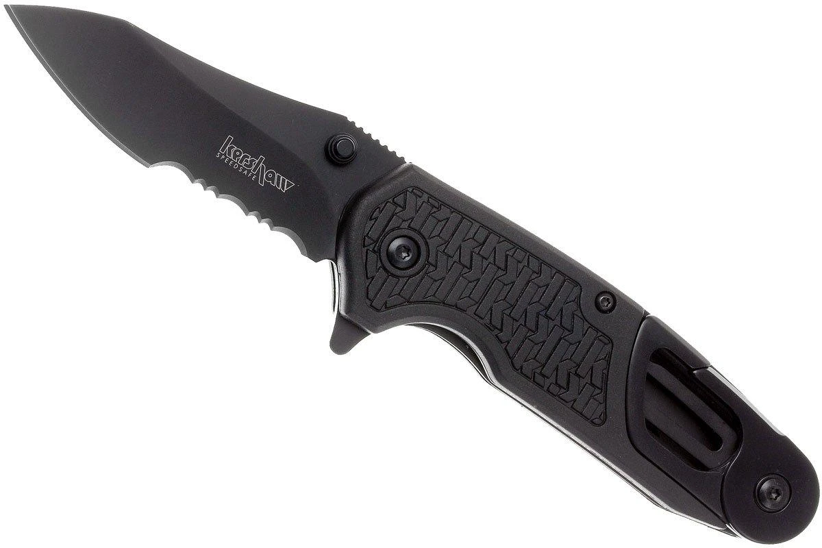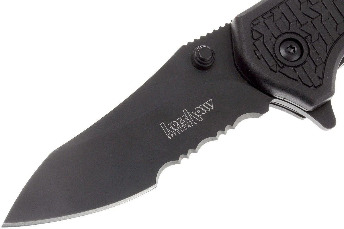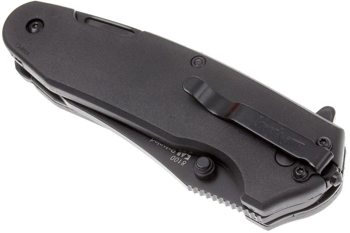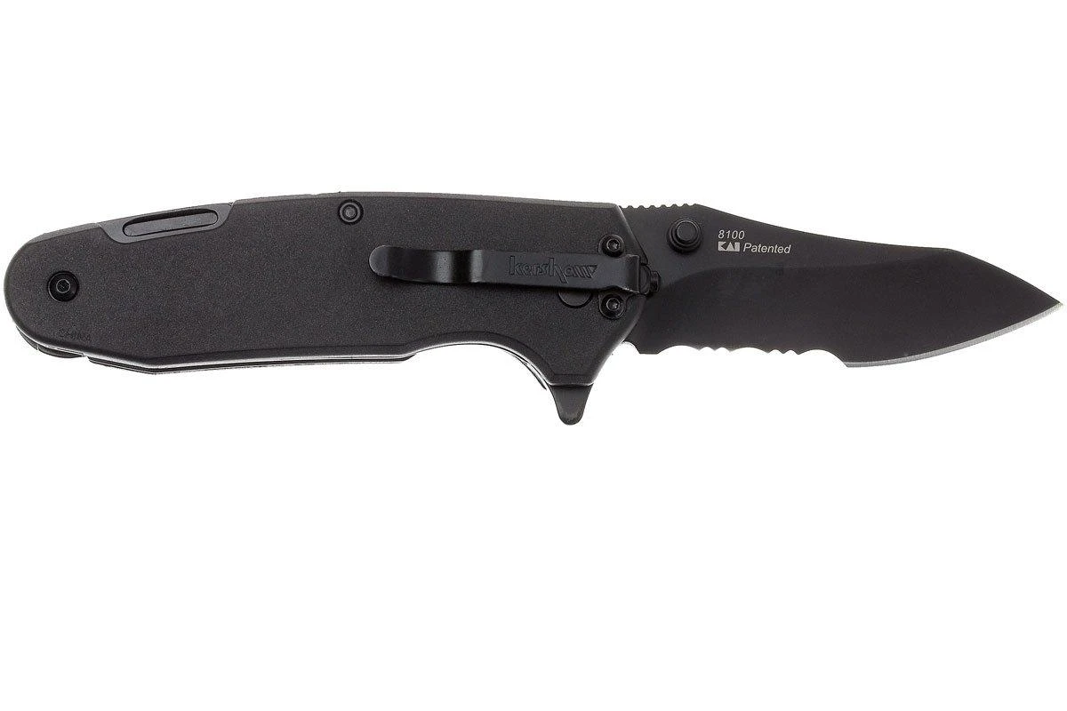 Le Kershaw Funxion EMT est un couteau de poche pratique avec toutes sortes de fonctions utiles qui peuvent bien tomber en cas d’urgence. Outre une lame partiellement dentelée qui peut être ouverte avec un ressort puissant via le flipper, ce couteau dispose également d’un brise-verre. Ainsi, vous pouvez casser une vitre (de voiture) en cas d’urgence. De plus, le manche contient un grand mousqueton pliant, un crochet de coupe, un décapsuleur et une clé polygonale. La lame et toutes les pièces pliantes sont verrouillées en position ouverte avec un linerlock. Afin que vous ne perdiez pas le couteau, il est équipé d’un clip de poche de transport profond (deep-carry pocketclip) en position tip-down. Par sécurité, il n’est pas possible d’ouvrir le mousqueton et la lame en même temps.