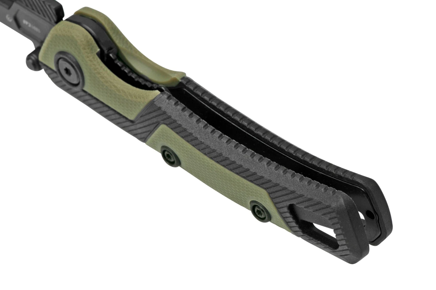 Le Kershaw Lonerock RBK 2 1891 est un couteau de poche unique, conçu spécialement pour la chasse. Vous ouvrez la lame avec le repose-pouce. Une fois ouverte, la lame est bloquée par un linerlock. Le manche est en FRN avec une fine couche de caoutchouc. Cela offre une excellente prise en main. Ce qui rend ce couteau si unique, c’est que l’on peut remplacer sa lame. Vous n’aurez jamais besoin de l’aiguiser ! Si elle vient à s’émousser, il suffit de la remplacer par une lame neuve rangée dans le fourreau inclus. En plus de la lame qui est montée sur le couteau, vous trouverez dans le fourreau pas moins de 14 autres lames de rechange. De quoi toujours avoir un couteau bien aiguisé ! Le Kershaw Lonerock RBK 2 est également livré avec un manche de rechange. Ce manche fin est spécialement conçu pour votre compagnon de chasse. Vous pourrez ainsi préparer le gibier ensemble.